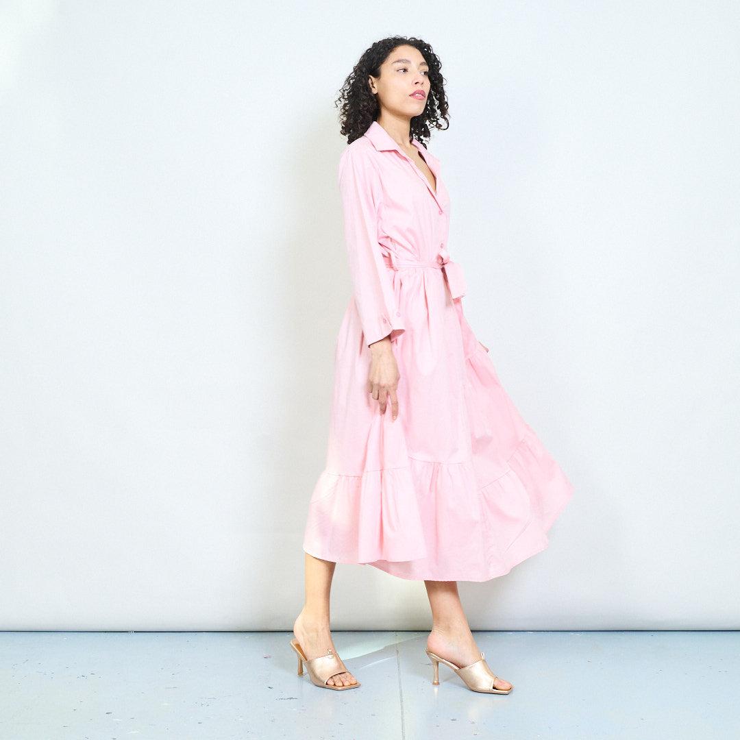 Rochia vine insotita de un cordon detasabil din acelasi material care permite definirea frumos a taliei.