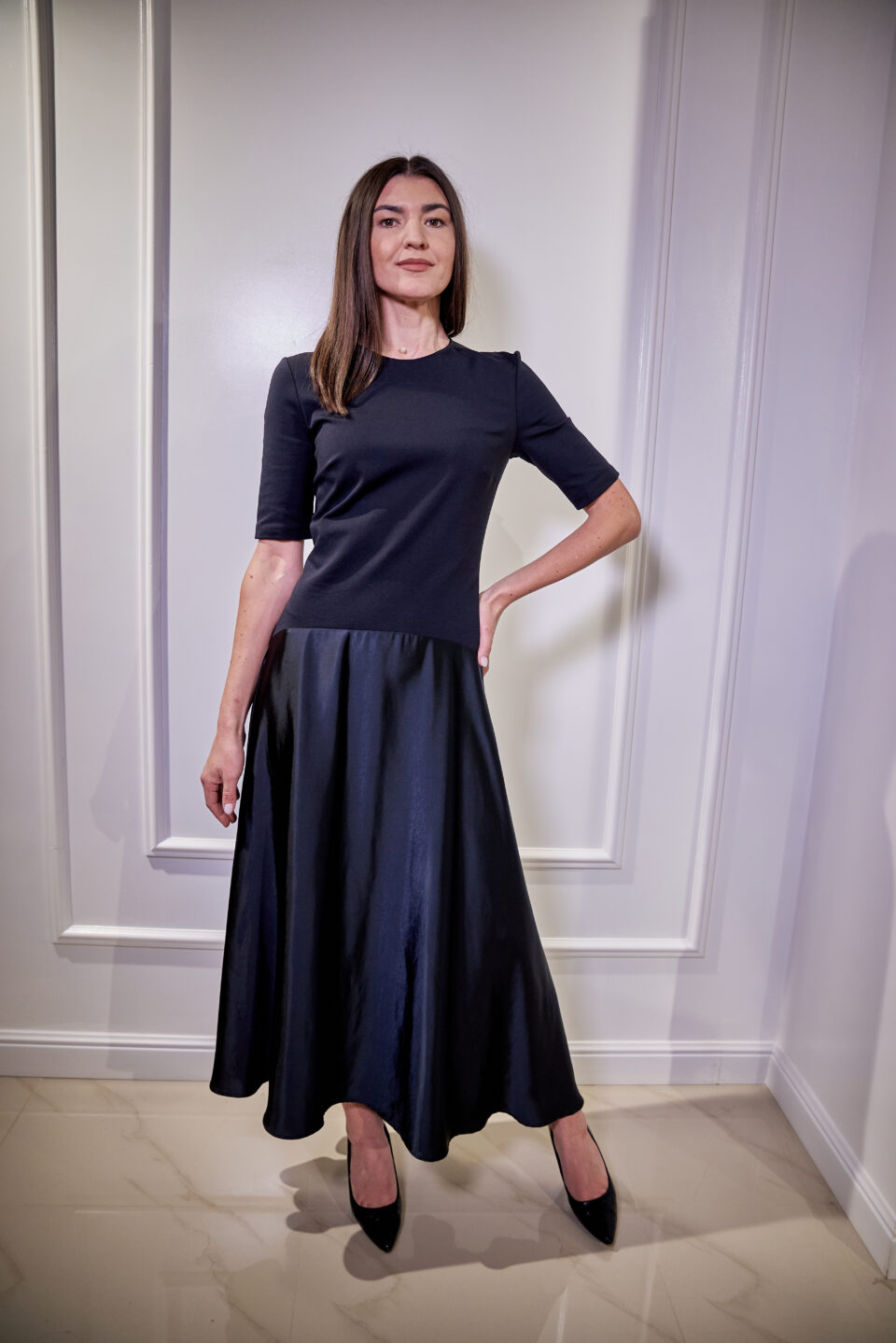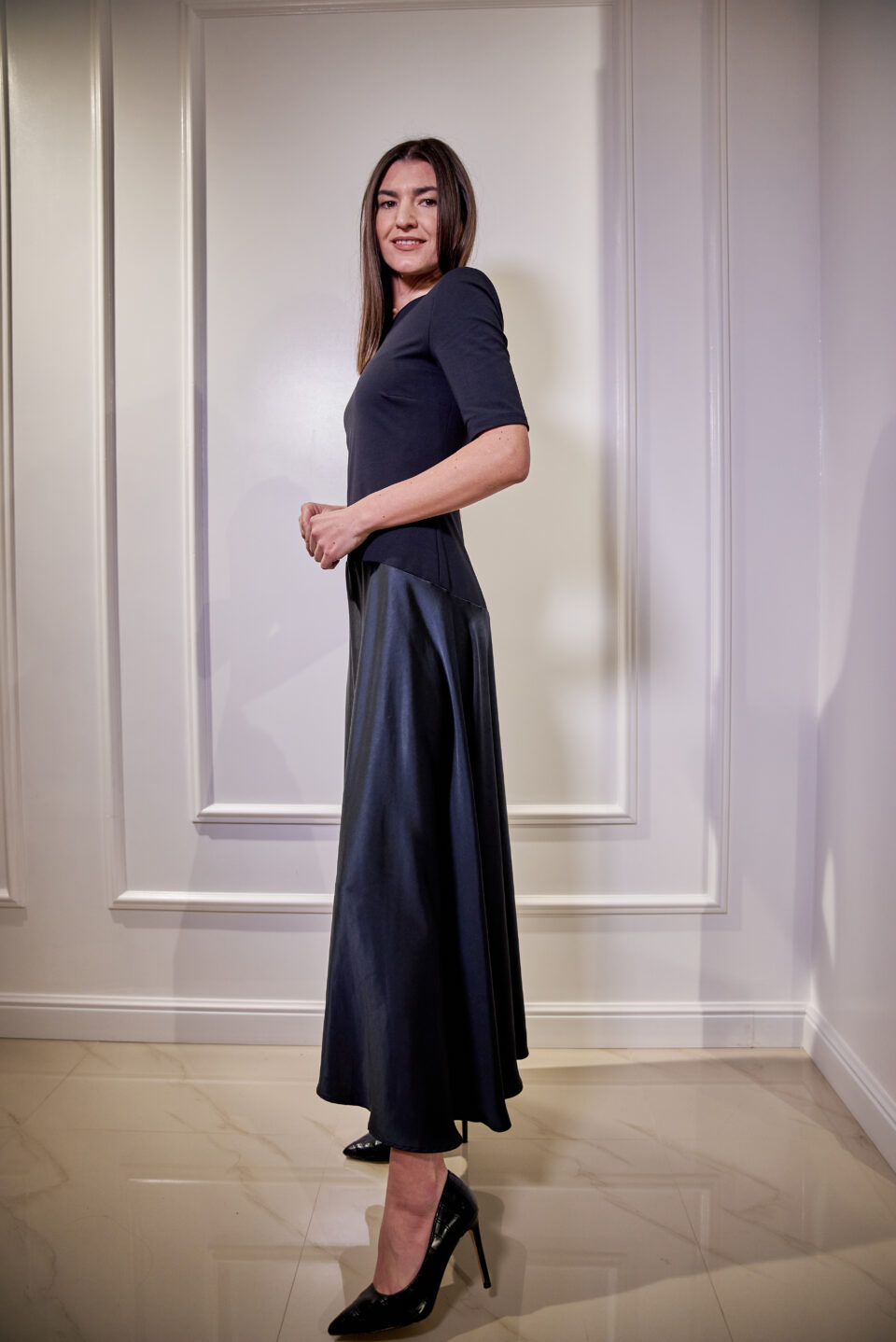 Rochie lunga eleganta,cu drapaj si accesoriu central