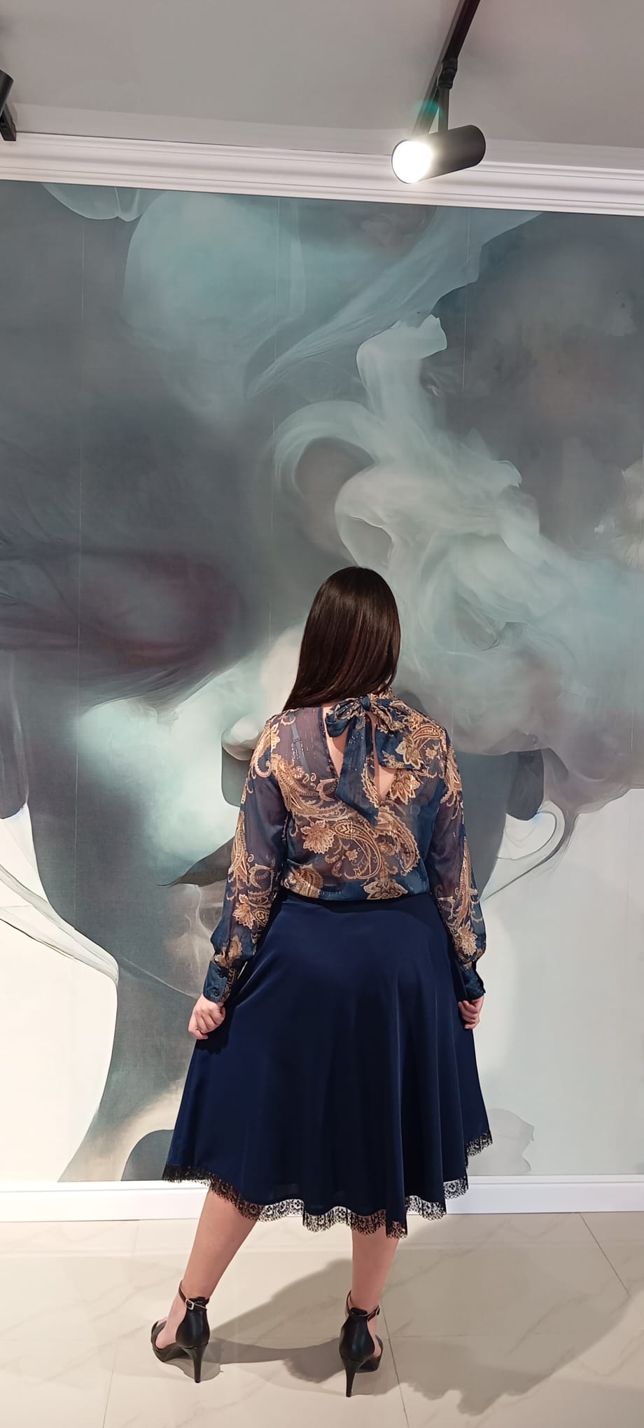 Bluza eleganta cu guler victorian si imprimeu baroc